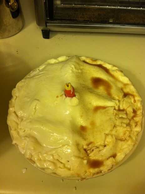 Estirar la corteza superior y superior de la tarta con él. Pellizque los lados hacia abajo y dejar que el pájaro pastel poke a través. Claro la boca de las aves de pie para que el pastel puede ventilar durante la cocción.