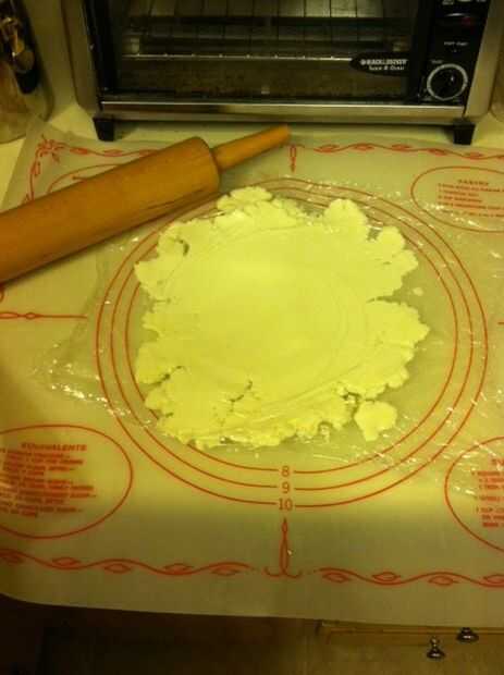 Papel a la masa de la tarta así que llenará el plato de pastel.