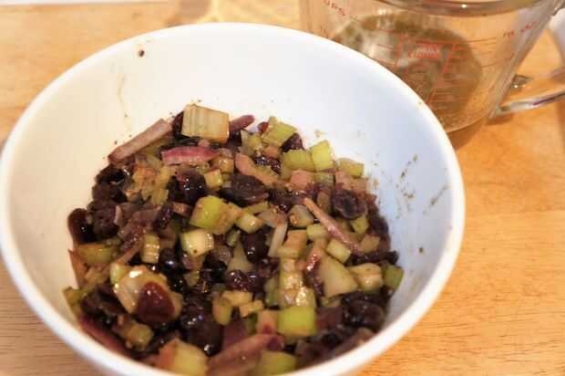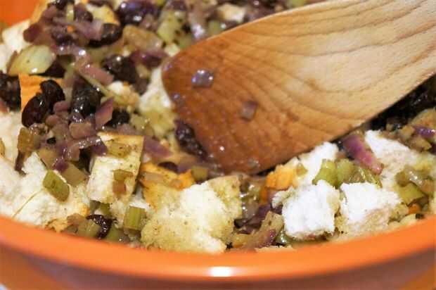Mezclar suavemente la mezcla de apio y cebolla con el pan rallado.