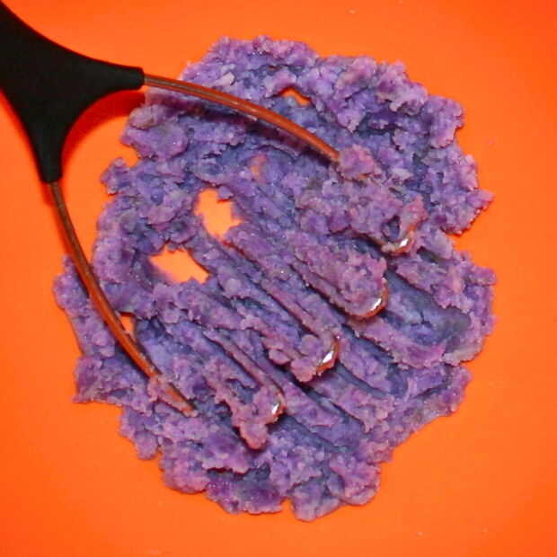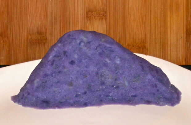 Hervir las patatas peladas, em el puré y luego formar un montículo triangular, en forma de montaña en cada plato.