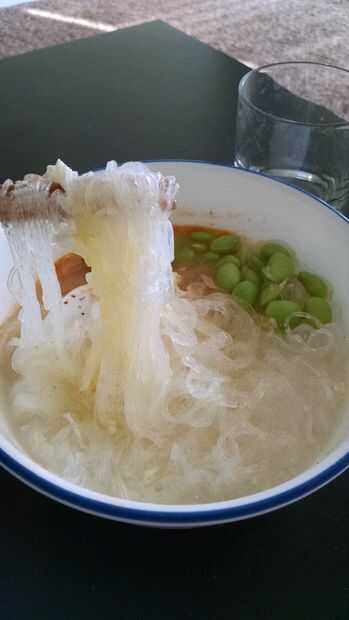 Después de unos tres minutos, usar el tenedor/palillos para empujar los fideos alrededor y comprobar que los fideos ahora son flexibles y remolino con el agua. Eso significa que son muy suaves!