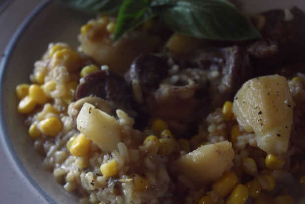 comida de una ollaRebanadas de salchicha con frijoles Cannellini, estofado bebé Kale junto con un caldo con sabor completoPaso 1: Lista de ingredientesIngredientes2 tazas baby col rizada2 salchichas de cerdo (pesto, parmesano)4 dientes de ajo1 1/2 za