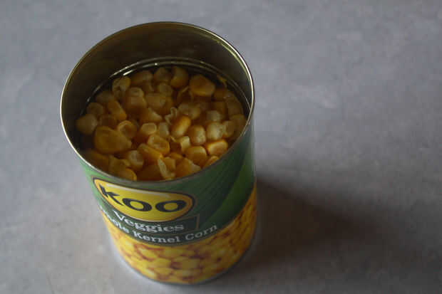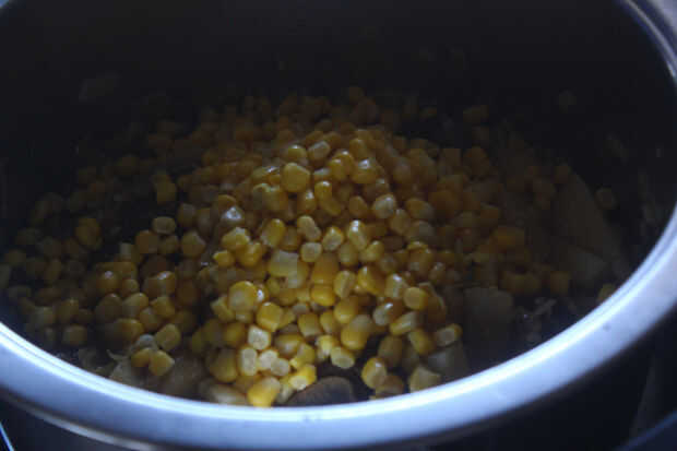 Después de esperar, abrir la lata y añadir el maíz a la olla. Nota: Elimine todo el líquido antes de añadir. Agregue y mezcle suavemente.