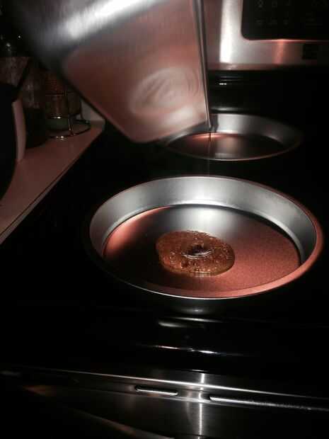 Después de su agradable y marrón vierten la mezcla de azúcar y agua en el envase de pan (opcional) ronda diferentes, desplazarse hasta su bien cubierto.