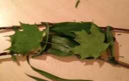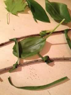 Tome una de las hojas más grande/más largo y ponga el extremo de en una de las hierbas final. Luego tomar el otro extremo de la hoja y poner que se a través de uno de los pastos del extremo opuesto o todo lo que pueda. Ello, por cada hoja que tiene hasta que no vea la superficie debajo de él. Una vez que ha hecho Inicio capas algunas de las más finas hojas tiene en la parte superior.