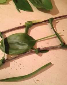 Uno de los pastos largos y atarla a la mitad del palo. Ate el otro extremo. No debe haber mucho pasto sobrante colgando fuera del nudo. Hacer esto con las hierbas cerca de 6 pulgadas de 1-2 apart.