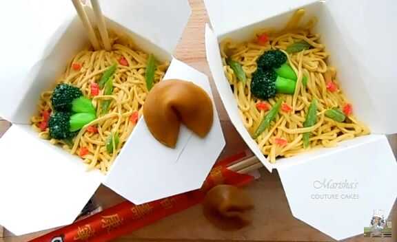 Estos realistas saca contenedor lo mein pasteles son increíblemente fáciles y divertidas para hacer. Que sería perfectos para una divertida fiesta comida china para llevar que para cualquier persona que ama a creaciones de pasteles que parecen como otros alimentos. Esto hice un vídeo de cocina de prueba también para averiguar si estos contenedores sería buenos para la hornada. Resulta que las aletas se dorarán. Sin embargo, bizcochos y tartas en el contenedor y transferirlos a un nuevo contenedor después de la cocción significan que no tengo que hacer cualquier talla o formar para caber en el contenedor. Así que la próxima vez, línea el recipiente con papel de aluminio y hornear los pasteles en el envase luego de transferencia.