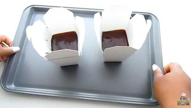 Para este video, he probado cuanto los contenedores sostendría en el horno. Mientras que cambiaron de color, hicieron las tortas perfectas que he podido cortar y transferir a otro recipiente. Cuando lleno la mitad al horno a 350 durante 25 minutos o hasta que al inserta un cuchillo en el centro salga limpio.