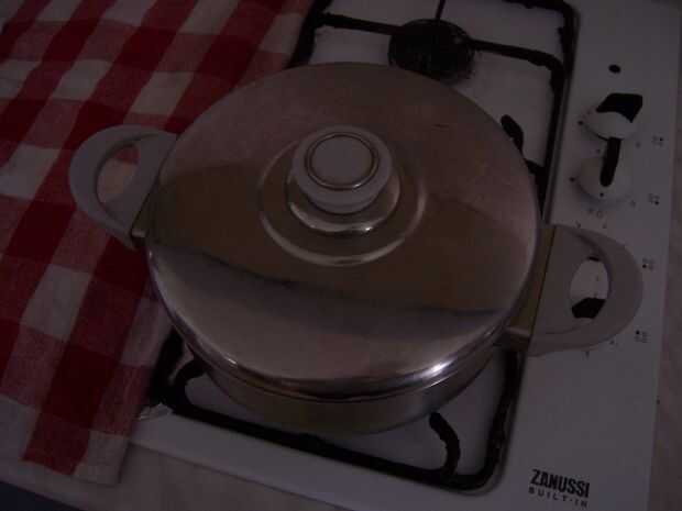 a continuación, se pone la olla en la estufa y establece a altas temperaturas. Mientras se calienta el agua con sal y aceite vegetal, corte el pan en trozos de tamaño medio. Deje que el calor del agua hasta, pero no dejes que hierva. Cuando está suficientemente caliente proceder al siguiente paso.