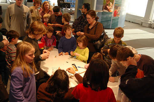 Esto fue increíblemente útil. Un montón de chicos de solicitudes tenía eran preguntas sencillas, a menudo tan fácil "Qué materiales necesito Inicio/next", que fácilmente podría averiguar mediante la observación de lo que estaba sucediendo o pidiendo a otro niño para ayudarles. Redirigido los diversos gritos de "¡ estoy confundida: ayuda!" de la persona ejecutar el proyecto a todos los presentes en la actividad--niños en el columpio de la enseñanza otros y todo iba muy bien. Si bien es a menudo no lo que ellos están acostumbrados a (la norma en la mayoría de las escuelas que permanecer quieto y esperar a que la enseñe a dar instrucciones), los niños toman a este estilo descentralizado de hacer actividades muy rápidamente.