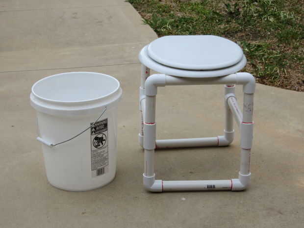 Uno puede utilizar un balde de 5 galones con esta cómoda o cavar un agujero de algún lugar en el bosque.