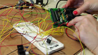 Coloque los cables de los sensores en los canales correspondientes de la placa. Utilice los cables de puente para conectar los cables amarillos para el MidiTron. Ahora conecte la fuente de alimentación para el MidiTron. Luego, usando los cables de un puente, conectar el MidiTron al canal vertical de tu protoboard.