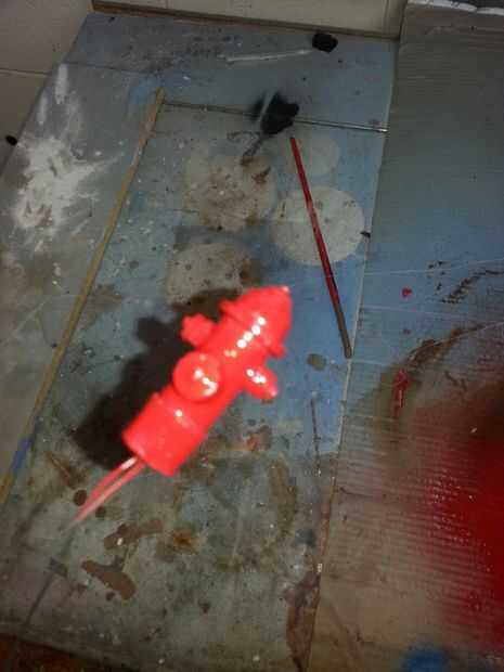 su firehydrant de la pintura. Usé pintura de aerosol roja, es mucho más rápido y encontré que se seque más rápido.