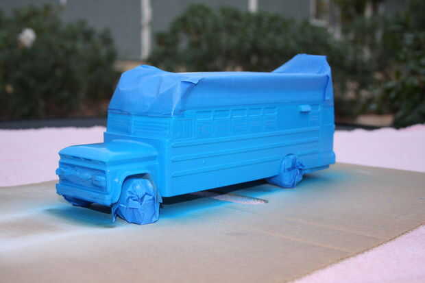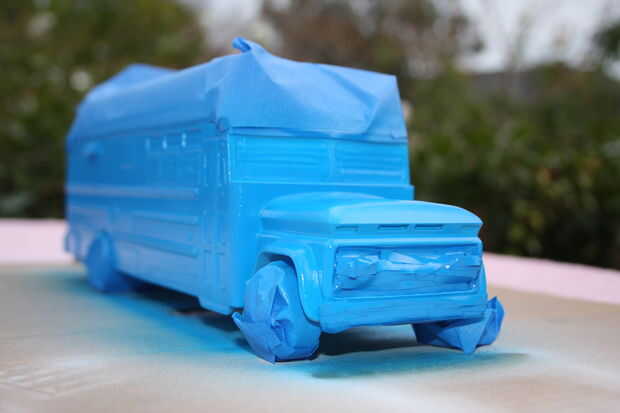 Entonces roció la pintura azul. Que seco y quitado el enmascaramiento de la cinta con mucho cuidado. Esto tomó un poco de tiempo, para no dañar lo que ya se ha rociado.