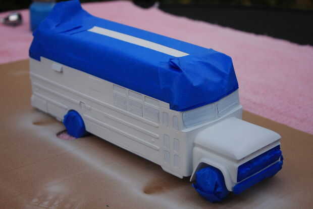 Asegurándose de dejar que la capa base completamente seca, luego enmascarado todas las áreas que deseó seguir siendo blanca, sabiendo todo dejó descubierta pintado azul. Si tienes algunas piezas adicionales como la escalera rota tenía, puede pintar algunos de su capa base sobre y comprobarlo con la cinta adhesiva antes de ir al modelo de sí mismo.
