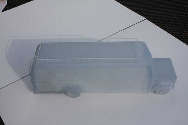 Para ahorrar dinero en impresión y materiales, rápidamente ahuecado el modelo antes de enviar el. STL. Puede ver esto en la última foto. Ambos extremos son perceptiblemente más oscuros, como las ruedas. Otra vez, consulte con su impresora y ver que si prefieren hacer este ellos mismos, algunas impresoras pueden imprimir una especie de panal de baja densidad o matriz dentro de áreas de muy gruesas para reducir tiempo y costos. Como siempre... Consulte con su impresora.