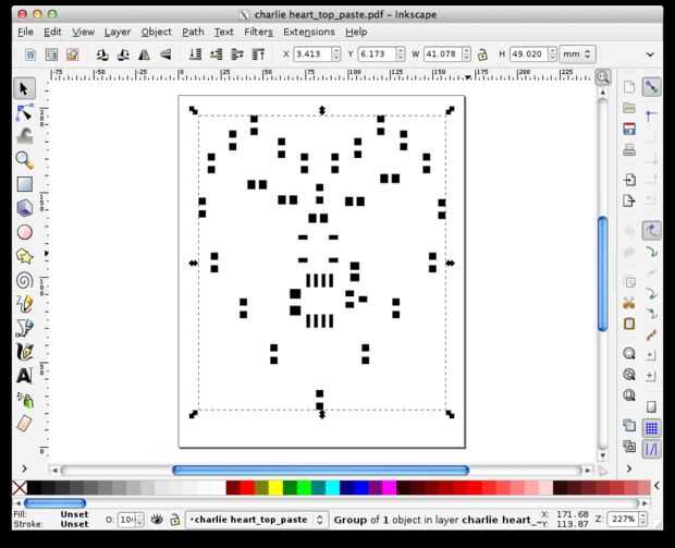 Ahora iniciar Inkscape y abra el archivo PDF. Configurar la precisión para "muy fino", pero esto puede no ser necesario. Definir las unidades a mm o en y verificar que las dimensiones son las mismas que el archivo de Eagle.