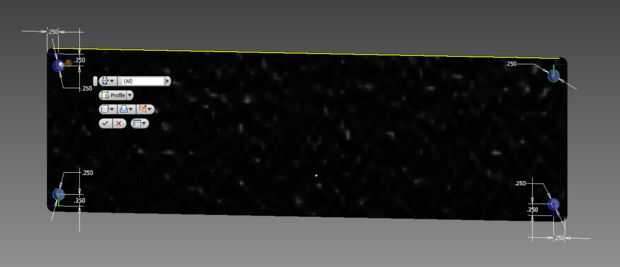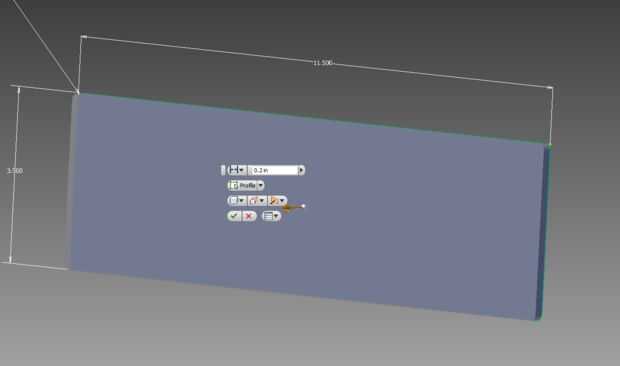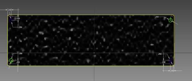 Empezar haciendo un dibujo de un rectángulo que es 3.5 x 11.5 y fileteados.125 pulgadas. Sacar.2 pulgadas. Ahora, exactamente como lo hicimos al hacer los orificios en el cuerpo principal, trazar línea de referencia que son.25 pulgadas hacia fuera y arriba/abajo de los puntos centrales de "ajustar a la verde". Ahora, de los puntos finales de las líneas de drenaje 4 círculos que son también.25 pulgadas de diámetro y extrusión a través de la totalidad de la placa.