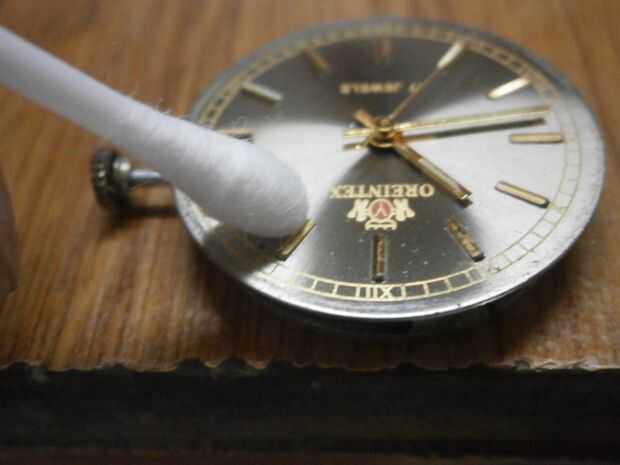 Limpiar la cara de reloj con hisopo de algodón, pero tenga cuidado con las flechas del reloj!!!!!!