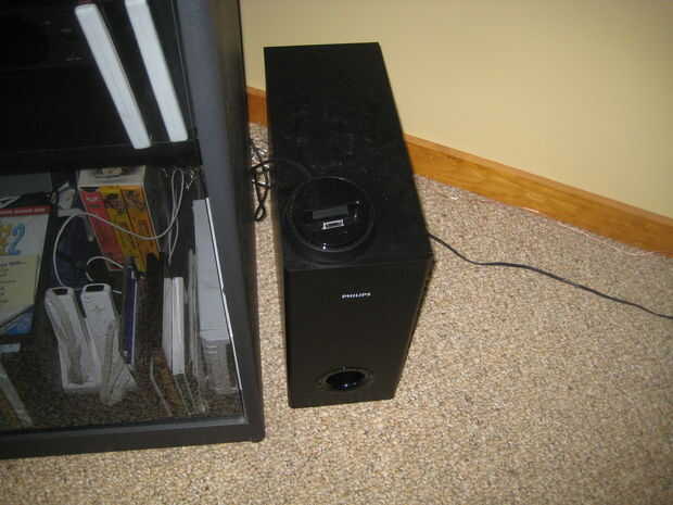El Subwoofer es la parte más sencilla de todo el conjunto hacia arriba. Se puede ir en cualquier lugar en la sala porque las frecuencias bajas son imposibles de detectar donde están viniendo con el oído humano. El mejor lugar es junto a su pantalla de TV o computadora. Asegúrese de no poner el subwoofer tocando la pantalla de TV o computadora aunque ya lo hará el conjunto resuene y se sacudan. He tenido este problema cuando he instalado minas en mi habitación becuse que estaba tocando la pared y sacudiría las fotos en él y era muy molesto así que me trasladé a la parte superior de mi archivador.