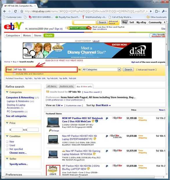 Ahora que haya hecho clic en el enlace debe traerle a ebay con resultados de la búsqueda para Wii. Haga clic en la barra de búsqueda de ebay y buscar lo que desea comprar. Compré un portátil HP de 1.200$, por lo que utilizo como ejemplo. Una vez que encuentre lo que usted quiere comprar ahora, debe mencionar algo sobre el reembolso durante la compra él ahora proceso.