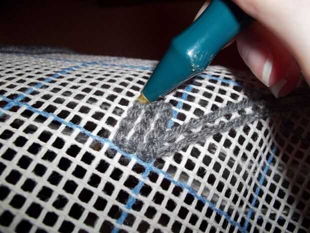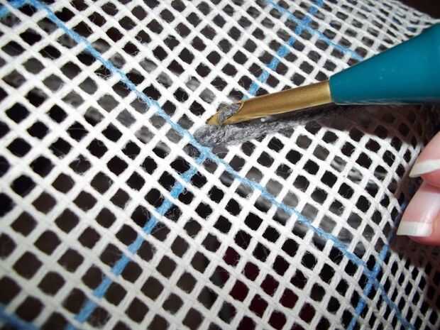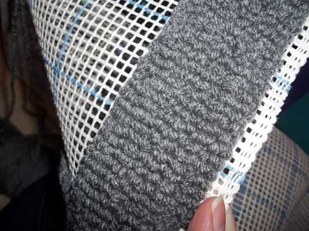 Otra vez, su elección de textiles influirá grandemente en la textura de la alfombra, como lazo de longitud. Uso de hilo (yo prefiero usar dos hilos a la vez), circuitos cortos hará una textura carpety, mientras que lazos largos pone una alfombra shag agradable.