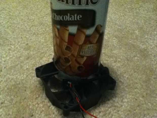 ahora tomar el Sugru y attatch el fondo de la lata con el ventilador con él