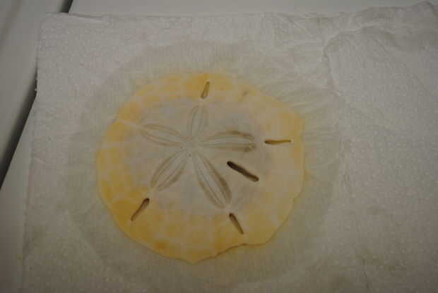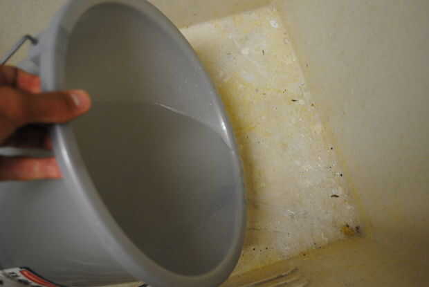 Descarga hacia fuera el cubo de agua de lejía y dólares de arena, cuidado aunque como los dólares de arena son muy frágiles!