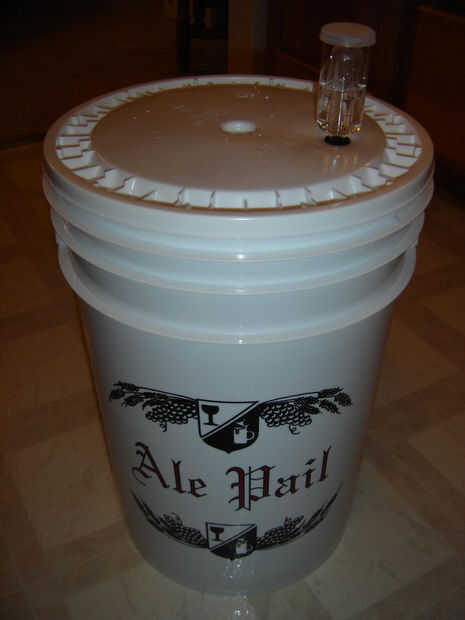 Ahora es el momento para agregar la levadura a la fermentadora. La levadura se come los azúcares en el mosto y producen alcohol y dióxido de carbono a cambio. Cubrir el fermentador con una tapa que está equipado con una bolsa de aire (para permitir que el dióxido de carbono escapar). La bolsa de aire debe ser la mitad lleno de agua. A continuación dejo la cerveza una semana en un lugar cálido y oscuro.