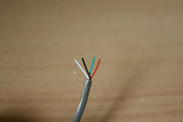Vale tienes que pelar el cable para revelar el cable por debajo una vez hecho esto debe haber 4 hilos, usted sólo necesita el rojo y negro a unos el poder verde y blanco son los datos para que pueden ir :)