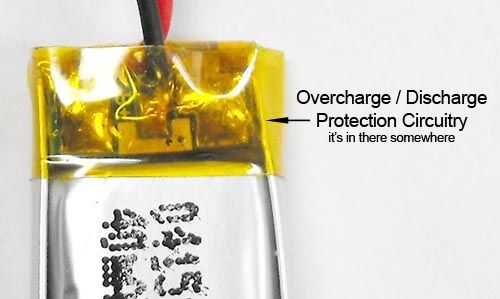 Este cargador está diseñado para trabajar con baterías que tienen sus propios construidos en circuitos de protección. Estos circuitos Evite que la batería está sobrecargada, o demasiado descargada. Chips de montaje superficial cerca de los terminales de la batería generalmente indican los circuitos de protección, pero siempre es mejor práctica para comprobar la hoja de datos. Obtener estas baterías de Sparkfun así, y creo que todas sus lipolys unicelular tiene estas en medidas de seguridad.