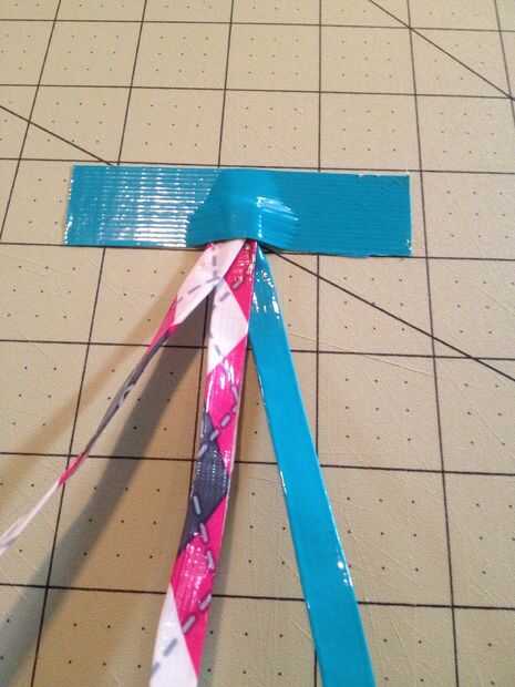 Luego tomar uno de los más grandes tiras y cinta abajo las tiras... Luego iniciar trenzado!!