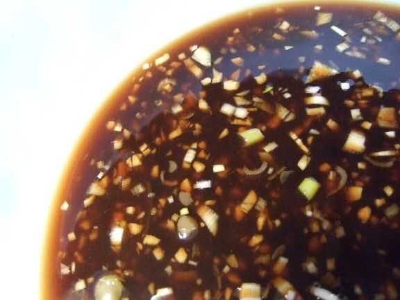En un pequeño bol, añadir el azúcar, salsa de ostras, salsa de soja, sake (o vino o Jerez), ajo y la parte blanca de la cebolla de verdeo. Batir o revolver con un tenedor hasta que quede bien mezclado.