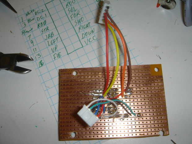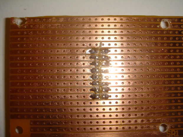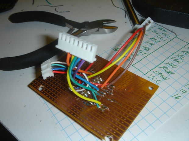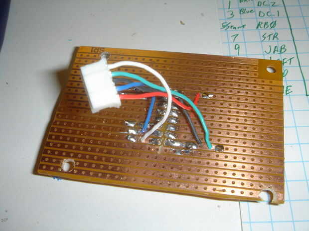 Con un pequeño trozo de placa perforada, o cualquier otro tipo de prototipos PCB, podría montar otro encabezado IDC y perno sobre la Agetec, dándome un lugar agradable y sólido para conectar el cable de cinta. Eléctricamente, esto es exactamente lo mismo que conexión la Agetec cables directamente a los hilos del cable de cinta. Sólo estoy haciendo más bonito.