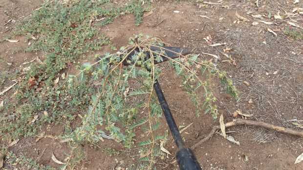Levantar la planta con su azada (o muy cuidadosamente con la mano) no olvide agitar semillas de innecesariamente. Cada vaina tiene cinco caltrops/picos, los cuales siempre están apuntando hacia arriba.