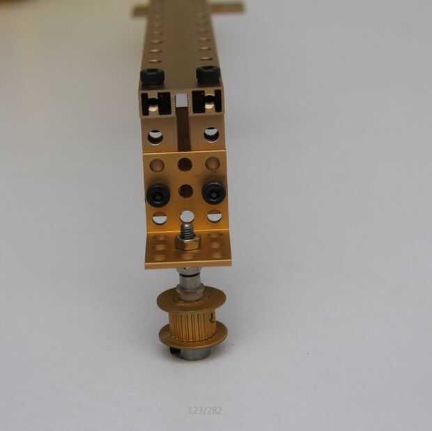 1. nido de dos cojinetes en una polea de Nylon e inserte un eje roscado 4x39mm en esa polea de Nylon.