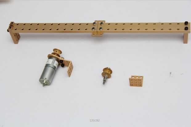 4. construir la estructura similar del Motor y la estructura de polea dentada en el paso 3 y utilice los tornillos y tuercas para fijar uno de ellos en viga 0824-48 y el otro en viga 0824-32.