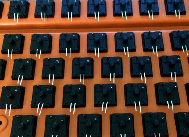 Inserte las luces de LED dentro de los orificios en la parte frontal del teclado. Tenga en cuenta que el electrodo positivo y negativo podría hacer una gran diferencia en el circuito. Aquí está una manera simple de identificar los electrodos positivos y negativos de los LEDs:
