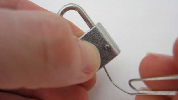 Cerraduras de equipaje barato como el ilustrado aquí son un ejemplo de bloqueos de cojín que puede ser recogido con un clip para papel. Estas cerraduras rudimentarias sólo tienen una pinza pequeño resorte que sujeta la barra en U (llamada el grillo) en su lugar. Para abrir la cerradura, todo lo que necesitas hacer es quitar esta abrazadera abierta. Puede hacer esto con un clip de papel cuyo extremo está doblado en un lazo pequeño. Si tienes una clave para usar como ejemplo, intentar replicar la forma como usted puede. Sólo entonces introdúzcalo en la cerradura y gire el clip hasta que salga abrir la cerradura. Puede que necesite mover el sujetapapeles hasta encontrar la pinza. Este método es más fácil y más discreto que otros métodos como cortar abren con cortador de perno.