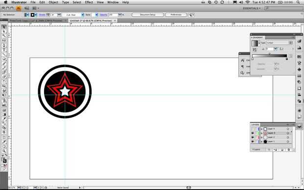 La tercera capa será la capa roja. Otra vez puede hacer lo que quieras, pero para la demo he decidido hacer un patrón de estrella que rodea a la estrella blanca original en la segunda capa. Usted puede utilizar a sus guías, pero utilice su mejor juicio centrado las estrellas rojas, ya que tendrá algunos ajustes para conseguir justo. Como ya sabéis que esto irá en la hoja roja de vinilo. Asegúrese de que usted ha creado en la tercera capa.
