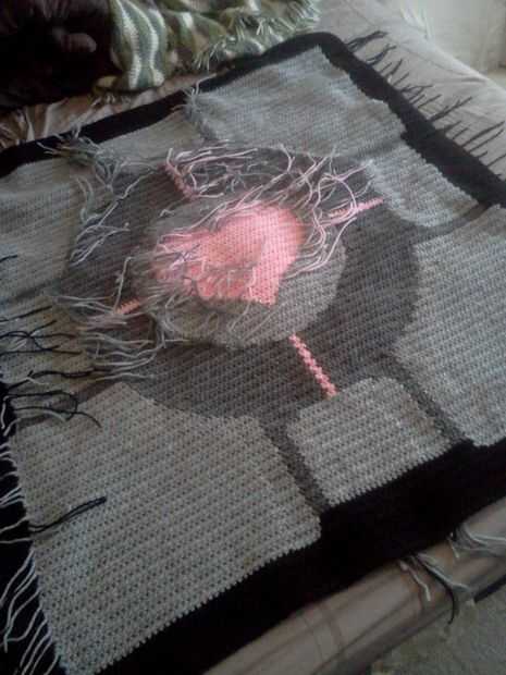 Seguir trabajando hdcs en puntos De acuerdo a la cuadrícula (Recuerde ch 2 al final de cada fila). Esto conseguirá absolutamente aburrido. Absolutamente usted tendrá que colocar esto (a veces sin tocarla durante días). Usted será absolutamente mortifican a la gran cantidad de puntas que requerirá metiendo el final de su proyecto. Sugiero fuertemente dejando más de cola promedio en cada cambio de color (ver cuadro pesadilla) para hacerlo más fácil.
