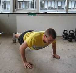 Nota: Si te apetece hacer push ups de esta manera pone demasiada tensión en los hombros, la repetición cuando el pecho es cerca de 5 centímetros (2 adentro) por encima del suelo.