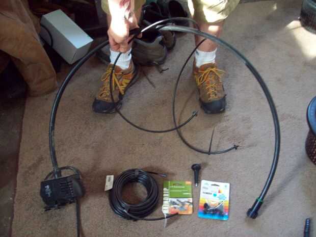 con 5' longitud de tubería plástica, fije un extremo a su bomba de agua sumergible y casquillo de extremo al otro extremo.