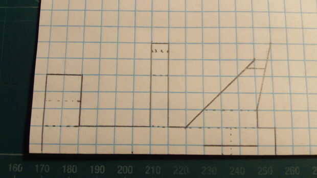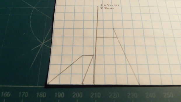 Una vez que el fuselaje ha sido trazado, comenzar marcando las alas y el estabilizador horizontal. Borde de ataque del estabilizador horizontal debe tener un barrido que para cada caja más lejos de la raíz, una caja de acorde se decae. El borde de fuga debe decaer una fila de cajas de acorde cada tres cajas. Para el ala, hacer dos marcas cuatro cajas aparte. El acorde debe decaer una caja cada tres cajas lejos de la raíz. El borde posterior debe tener un decaimiento del acorde de cajas 0,5 cada 9 cajas. Una vez que ha marcado cada una de estas superficies hacia fuera, usted puede cortar hacia fuera.