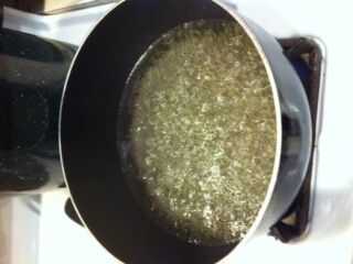 La reacción ha terminado, y ahora nos quedamos con acetato de sodio con ácido acético al sobrante, así que tenemos que hervirla hacia fuera. Poner la solución en medio alto y el calor. Ahora verlo hervir. No quieres un Violante hervir, a hervir. Intenta reducir el volumen de solución, así que un feliz medio debe ser fino. Cuidado, esto no es terriblemente divertido. Después de que la solución hierva hasta aproximadamente la mitad de su volumen inicial, usted notará un color cambie. Se convertirá un distintivo color paja y oro. Empieza a girar a un color ámbar, usted sabe que usted necesita parar.
