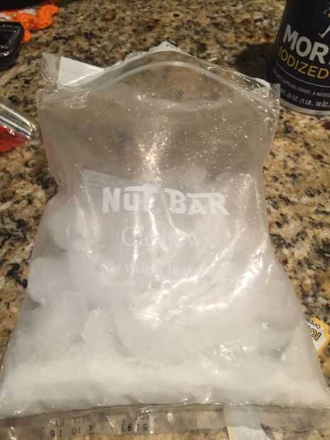 Tomar el otro ziplock grande y llenarlo con sal el relleno con hielo