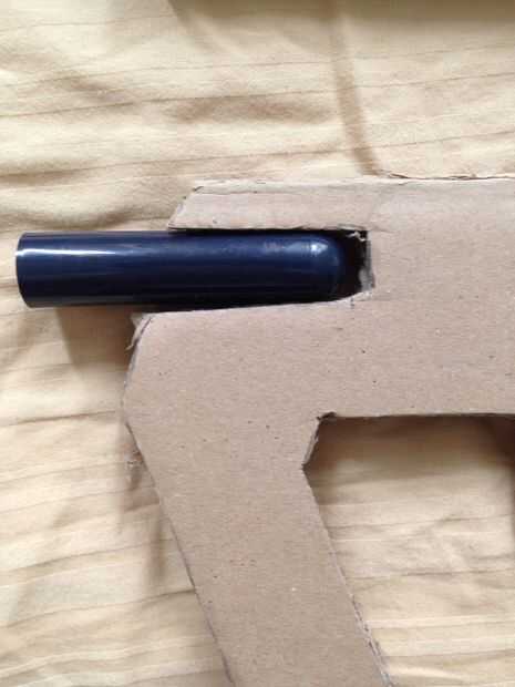 Tienes que ser un poco creativos con su. Encontrar a algún tipo de objeto de tubo que puede ser utilizado como un barril. He utilizado un recipiente de cepillo de dientes desechables. Luego, cortar las dos rebanadas de la traza para el cañón y luego colocar los otros dos a cada lado.