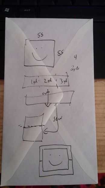 ¿Quiero un diagrama simple de uber? ¿Como mi cara feliz sobres dibujo? He comprado unas 3,5 yardas (126 pulgadas) de tela. Corte por la mitad para que yo tenga dos piezas miden 63 pulgadas y alrededor de 44 pulgadas de ancho cuando se abrió desde la línea de doblez. Cosí las piezas junto en el lado largo por lo que tendría un respaldo de tejido para adaptarse a... mide aproximadamente 80 pulgadas por 63 pulgadas – bastante fácilmente cubrir mi top de edredón de 55 × 55. Ver sus orillos y recortar!