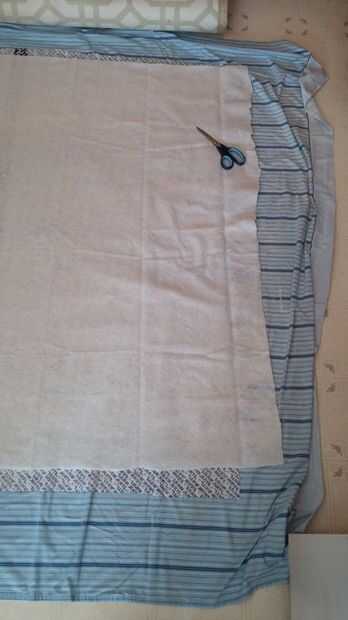 Pone a la tela de forro con la "derecha" o patrón hacia abajo, la parte "posterior" o "revés" para arriba. Esto a partir de la media y su forma de trabajo hacia fuera a los bordes lisos.