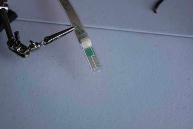 Paso 1: pelar de nuevo la capa de cinta de 3M y la capa protectora de plástico. La capa verde es una capa conductora semi-que es lo que se verá como usted tire hacia atrás la capa de la cinta. La forma más sencilla de esto tire es utilizar una hoja de afeitar o cuchillo a cavar entre las costuras de plástico, que le permitirá a este despegue como un plátano. La capa gris es la capa conductora que es lo que realmente será la conexión fija a. Realizar la conexión directamente sobre la capa conductora le permitirá tener una carga continua. Si realiza la conexión en la capa verde, puede notar su cinta se ilumina, pero más probable es que se corta mucho más rápido. Más probable que no, probablemente no incluso enciende para arriba.